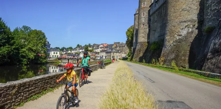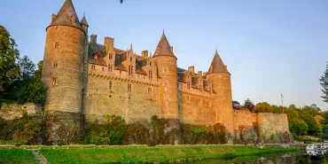A section of La Vélodyssée with a dedicated cycle path and one rich in waterway heritage: 54 locks and the Rigole d’Hilvern, which epitomises the huge hydraulic complexity of the work required when constructing the canal. Of particular interest are the numerous tree species which, between them, provide very welcome shade from the sun. At the heart of the Rohan Country, this is a very pleasant stage on La Vélodyssée with designated lanes. Shortly after Rohan, don’t miss out on the essential detour past Timadeuc Abbey. The impressive fortress, moored to its rocky platform, comes into view as we head towards Josselin.