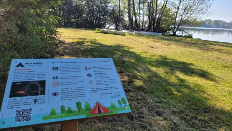 Opposite the Plaines de Mazerolles on the site of the yacht club, a 6-place nature halt for cyclists and walkers. The rest area is free of charge, but you must register on arrival using a QR Code.