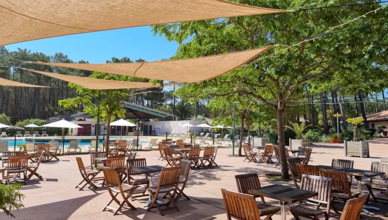 European Ecolabel awarded in 2012, certified by Afnor with a view to preserving our environment. 4 & 6 person gites in a forest of pines 500m from the seawater lake and 2km from the ocean. The village is bordered by a cycle path, starting point for lots of rides. Sport equipment: 1 multisport area, 1 tennis court, bowling area, 1 beach volley. Private parking available, but no cars in the holiday village. Kiddie club (3/12's) during school holidays. Entertainment in July and August. Bar and shop and takeaway food in July and August. Swimming and children's pool and paddling pool. Playground. Off-season room hire for events.