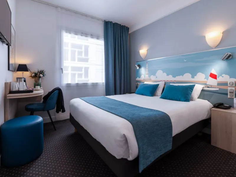 Réception ouverte en continu, présence d’un veilleur de nuit et disponibilité de l’équipe assurent un séjour serein et agréable. Accessible à pied depuis l’hôtel, un parking gratuit est doté de deux bornes de recharge électrique.
