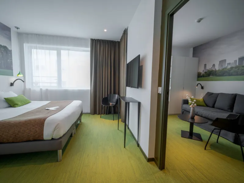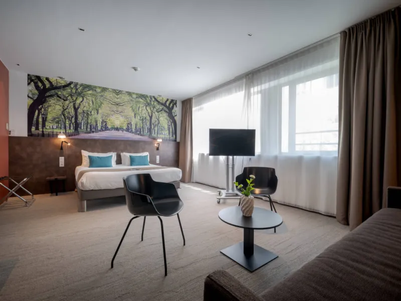 The Central Park Hotel & Spa located in the peaceful and picturesque greenery of the Parcs de la Rochelle, is contemporary in its design and sober in its style. The Central Park is a very inviting place where fine service is a top priority and guests are offered high quality facilities such as our spa (fitness, Jacuzzi, sauna, hammam, massages), business centre, meeting rooms, room service and concierge service. As the city of La Rochelle has long been at the forefront in the field of urban ecology and sustainable development, we have made respect for the environment an essential element of our ethos.Localisation