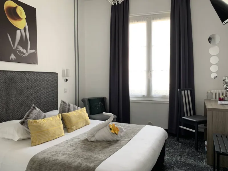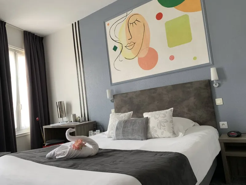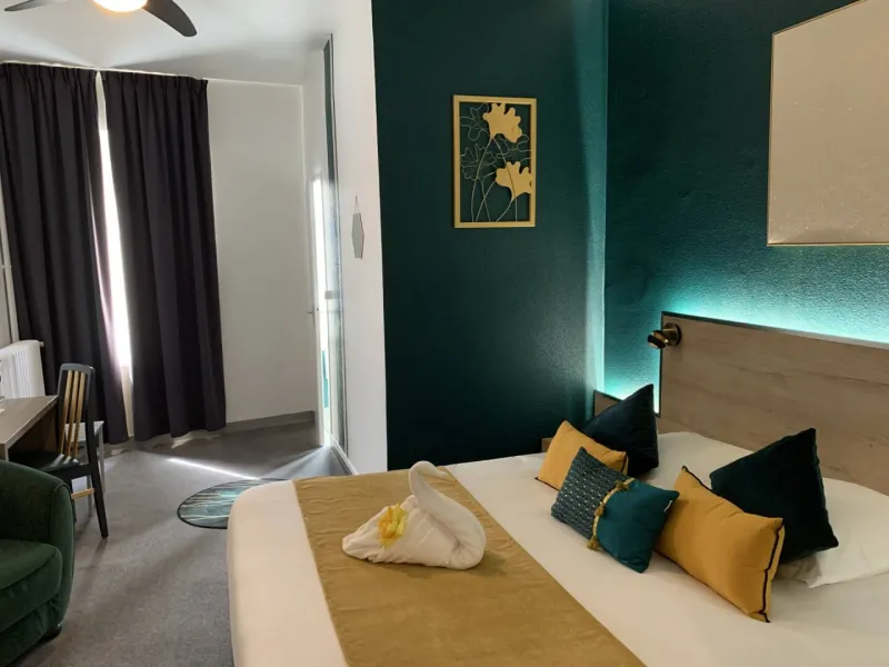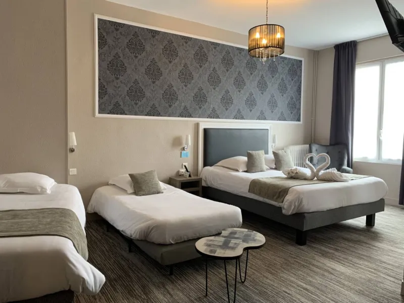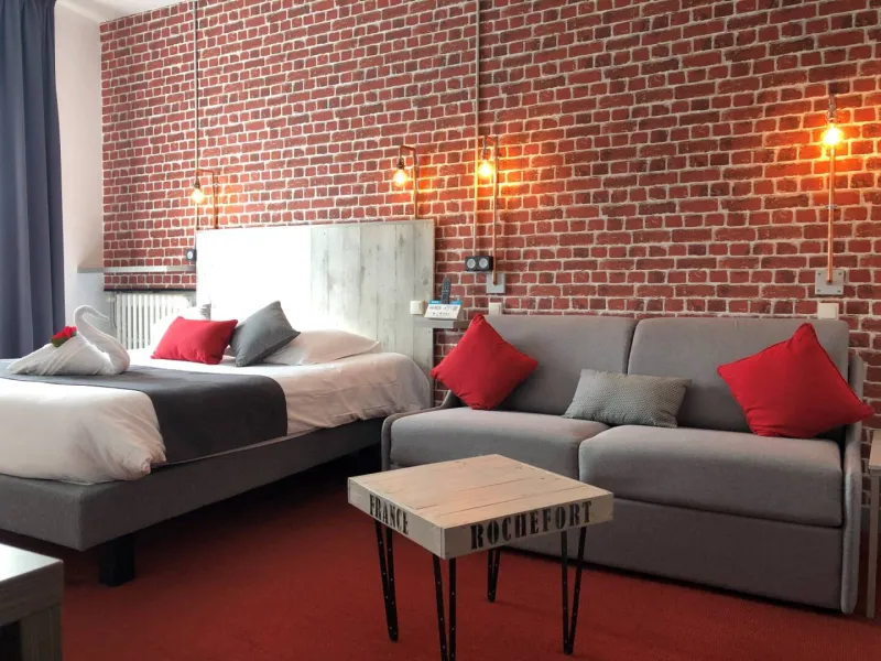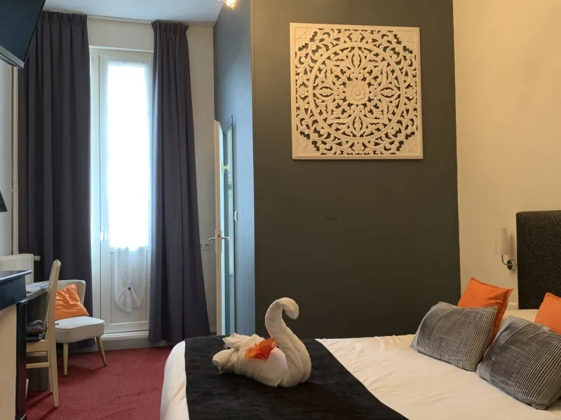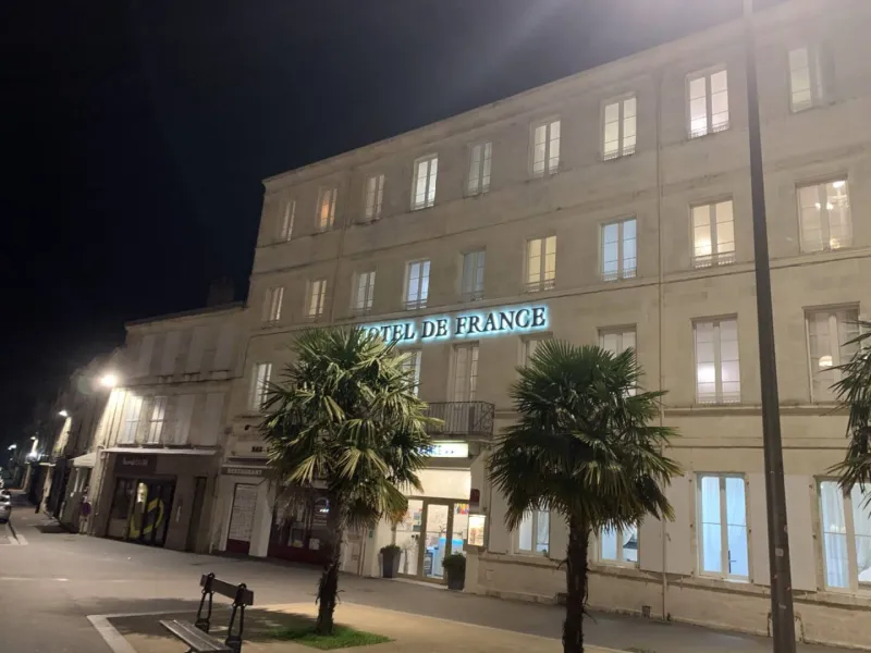 The Hôtel France offers spacious rooms and three fully equipped aparthotels for a completely independent stay. We welcome you to the heart of the historic town centre of Rochefort, a spa town with character. Opposite the post office and tourist office, a stone's throw from the legendary Place Colbert (remember Les Demoiselles de Rochefort) and the Palais des Congrès, our location is simply ideal.Spread over three floors, accessible via our listed period staircase and a lift for the first and second floors, our 25 rooms are equipped with all the essentials: air conditioning, double glazing for your peace and quiet, flat-screen TV, Wi-Fi connection, courtesy tray... Comfort without compromise.