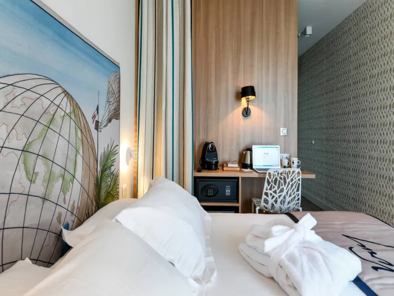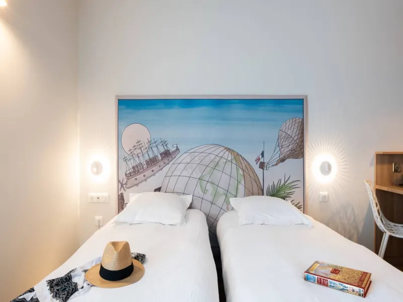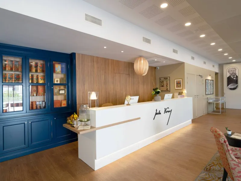 The Hôtel Littéraire Jules Verne signature collection by best western is ideally located in downtown Biarritz, a few minutes walk from the Grand Plage and the lively Les Halles district. Completely renovated in 2021, the hotel offers a true immersion in the world of one of the most famous writers in the world, paying tribute to the author of "Twenty Thousand Leagues Under the Sea" and "Around the World in Eighty Days". From air travel to the depths of the sea, each space is distinguished by its unique decoration, encouraging contemplation and well-being. The hotel has 77 modern and comfortable rooms, as well as an independent apartment, a closed and secured underground parking, a large garden with a heated outdoor swimming pool, open in season, and a fitness room.Localisation