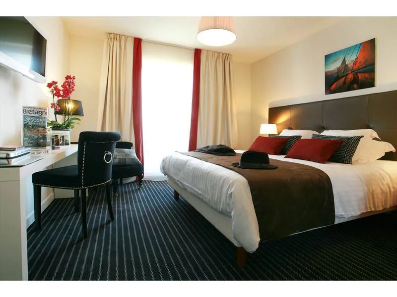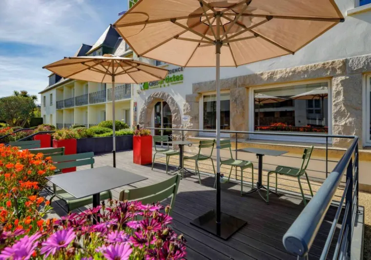 The hotel "La Résidence" welcomes you to the heart of the corsair town, just a stone's throw from the historic centre of Roscoff, 20 metres from a free car park, 100 metres from the old port and the seafront and 5 minutes from the pier on the Ile de Batz, the ferry terminal and the ferries to England and Ireland. The sea is just down the road.Close to the thalassotherapy centre and the biological station, in the heart of a lively district full of shops and restaurants, our hotel is an ideal base from which to discover the small corsair town of Roscoff and all the treasures of Finistère.