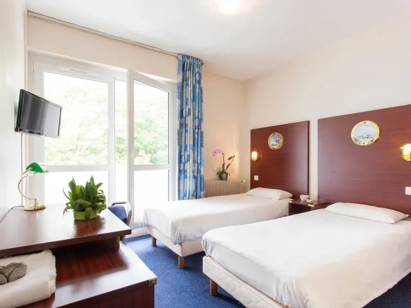 In a quiet setting on the edge of a park with remarkable trees, the Hôtel des Gens de Mer offers 48 rooms, suitable for couples, families (triple, quadruple duplex rooms) or business travelers. Some have private terraces or balconies. They may have a view of the park, the city or the Old Port.All our rooms are accessible by elevator.