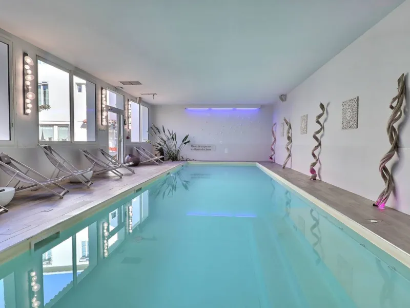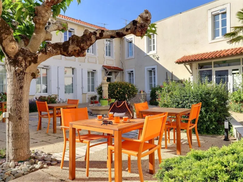 Open all year round in Fouras-les-Bains. Located 2 minutes away from the central beach and the town center, the hotel features a 140 m² spa, a flowery garden, a cozy bar and a seminar room. An indoor heated swimming pool, balneotherapy, sauna and hammam. Access to the spa is included in the price of the room. Beauty care on appointment. Free WIFI. There is a safe at the reception (or in the rooms of the "privilege" category). Garage rental : 16 €. Extra charge for pets: 11 €.Localisation