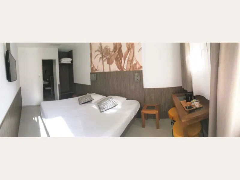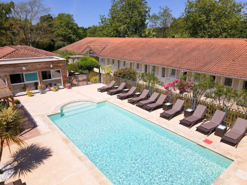 The Originals Le Lodge hotel, rated 3***, is located in the south of the Landes region and at the entrance to the Basque Country, 10 minutes from Bayonne, Capbreton and Hossegor, and 30 minutes from Spain, ideal for visiting the region. It's a unique place between the countryside, the mountains and the ocean. Our establishment is a charming, peaceful, friendly and comfortable hotel where we welcome you for a stopover or a stay in a warm, family atmosphere. Hôtel le Lodge has 25 elegant and functional rooms, all on one level, arranged around the garden or the swimming pool (heated from April to September). You can also take advantage of the forest, which is accessible from the hotel. We welcome you all year round, 7 days a week, with your well-being and peace of mind in mind. Wifi and free parking. Air conditioning. Pets allowed under certain conditions.Localisation
