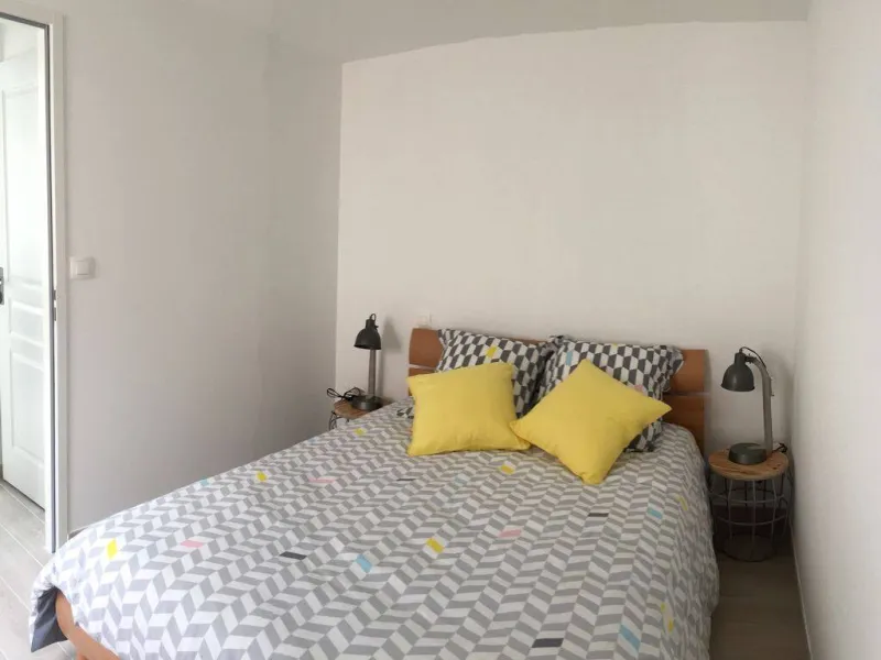 Petite maison de plain-pied en rez-de-chaussée, au fond d'une venelle typiquement charentaise, dans un ensemble résidentiel entièrement rénové. 2 pièces, 36 m² : salon/séjour, cuisine américaine, 1 chambre (1 lit 140), 1 chambre mansardée (2 lits 90), salle d'eau, WC séparés. Pad pour velux électrique à détecteur de pluie et stores occultants. Patio privatif et clos. Abri vélos couvert commun. Linge de lit et toilette, forfait ménage en supplément. Matériel bébé gratuit. Stationnement gratuit dans la rue. En centre-ville, proche des thermes, transports et tous commerces.Localisation