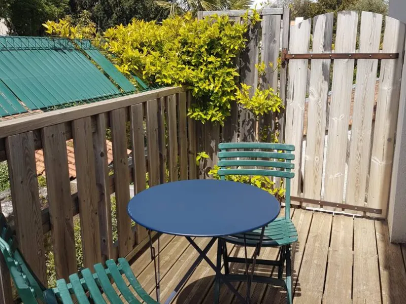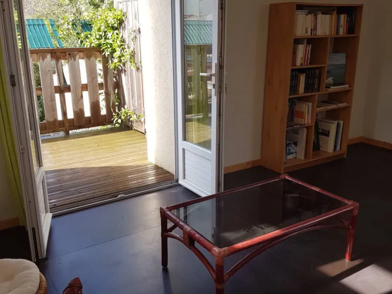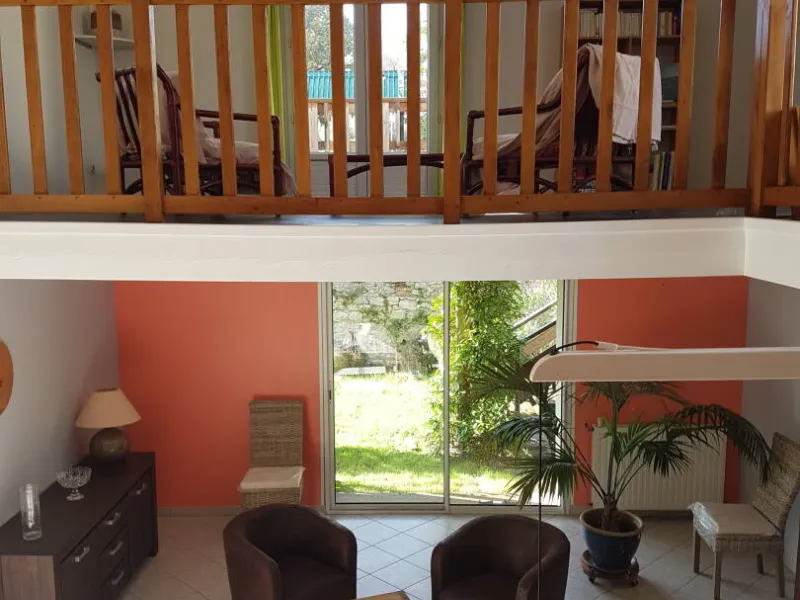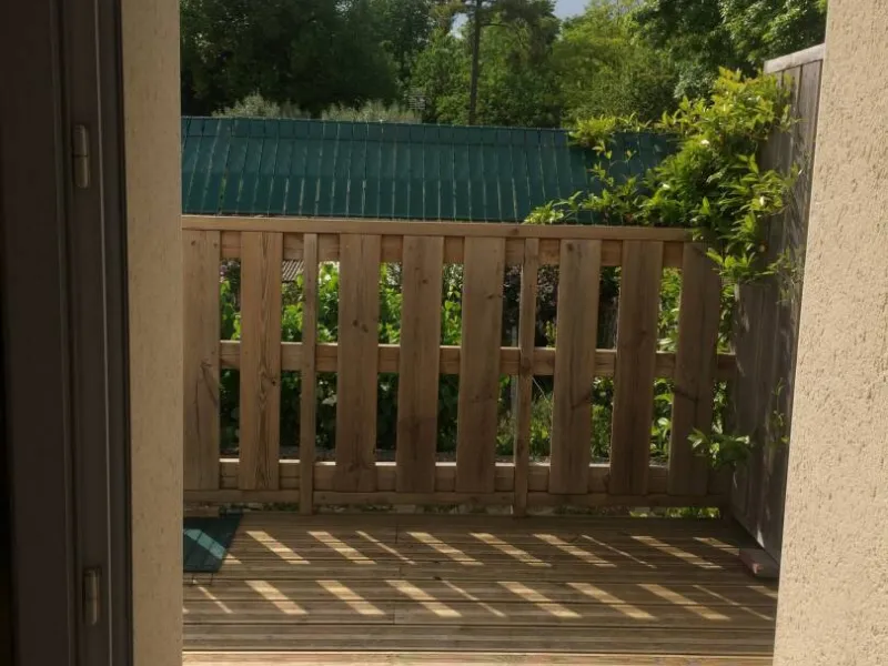 - mezzanine 20 m2 donnant sur balcon bois 6 m2, vue sur parc, avec accès au jardin par escalier