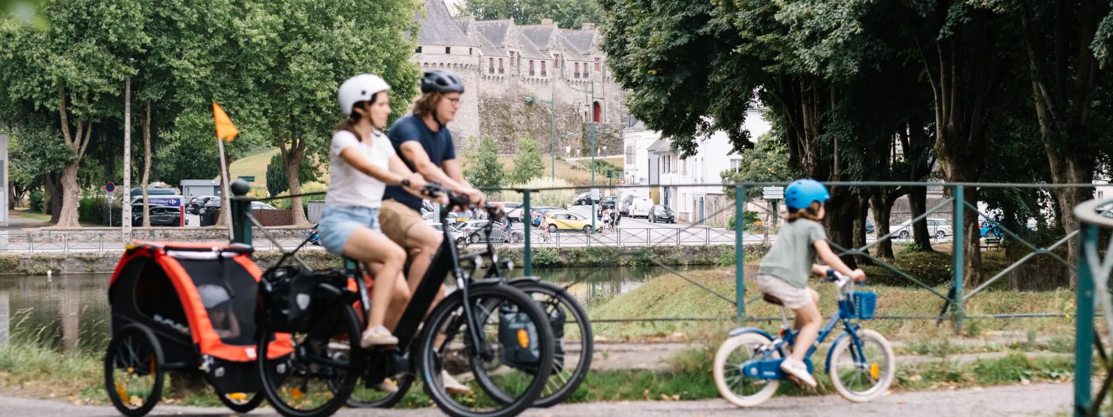 Designated track and very steep descent into the Guerlédan dam towards Pontivy. Here the Blavet is no longer navigable. The steep-sided valley, imposing lock keepers’ buildings and lush vegetation, give this stage of La Vélodyssée an enchanting feel.