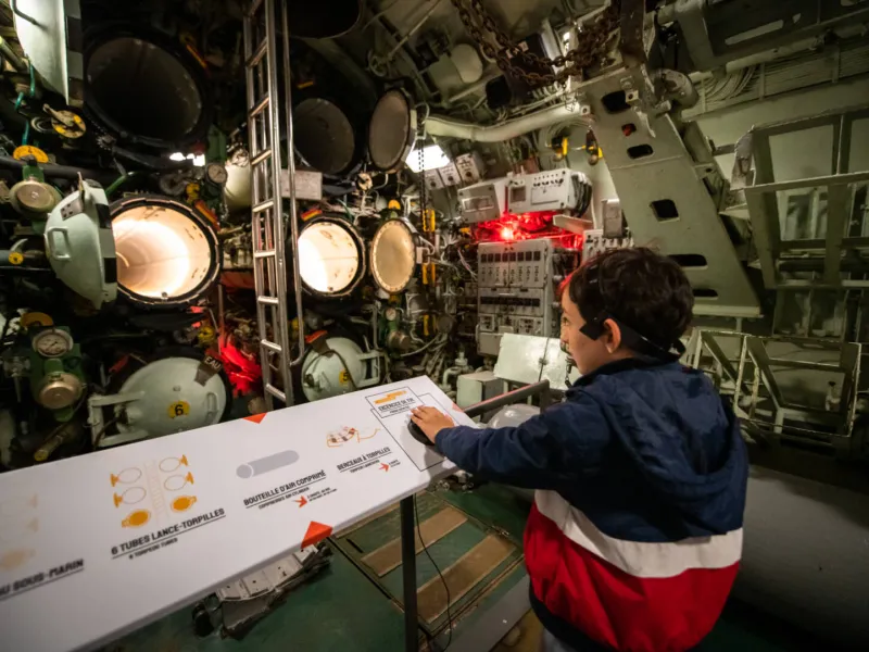 The scenography emphasizes the human experience. Sounds, stories and testimonies accompany the progression inside the submarine, allowing us to understand the living conditions, the rigors of the missions and the indispensable solidarity on board. Each compartment recounts a facet of the submariner's profession, between technology, endurance and commitment.