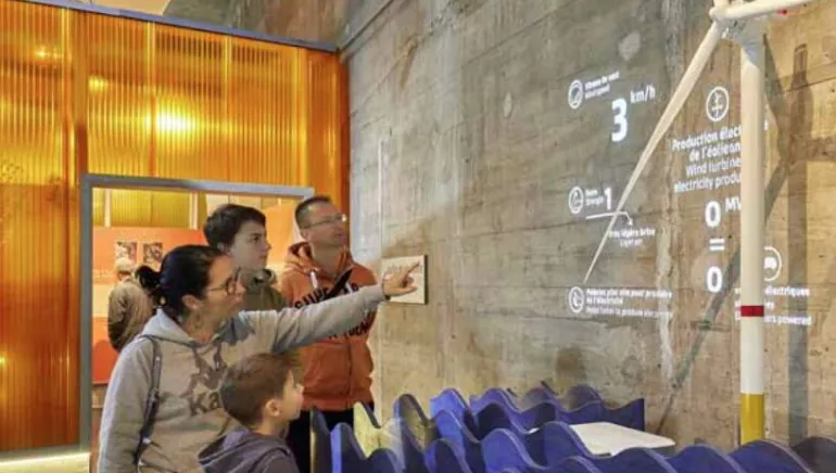 The tour highlights the major stages in the development of technologies, as well as the know-how involved in offshore wind energy today. The tour is punctuated by models, animations and playful devices, making the concepts concrete and comprehensible. The visit lasts around 45 minutes, and can easily be integrated into a day's visit to Saint-Nazaire or the coast.