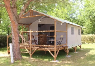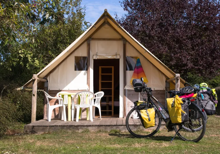 If you’re looking for a cycling holiday cottage, but also like the idea of camping in a tent, we have the perfect place for you: the ‘Cabadienne’ (named off of a play on words in French combining ‘cabin’ and ‘Canadian tent’). The Le Chaponnet campsite offers this 10-m² accommodation with two single beds and electricity included so you can charge all your devices.