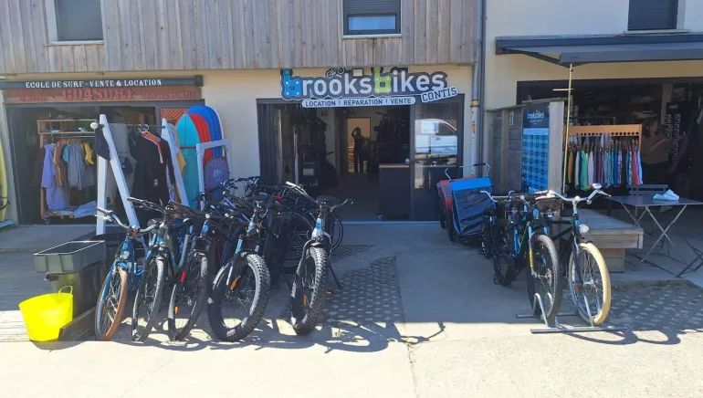 Brooks Bikes offers you a wide range of bikes to rent for the whole family (children - adult city - VTC - mountain bike - electric assistance - children's trailer - crazy-bikes, fat bike...). We welcome you on the sites of Contis-Plage, at the campsite Lous Seurrots, at the campsite Les Dunes de Contis, at St Julien en Born (723 route des lacs), at the municipal campsite of Cap de l'Homy and at the campsite Marina Landes at Mimizan-Plage. Sale also of bikes of the brands Arcade, Orbea, Haibike, Winora, MAA...